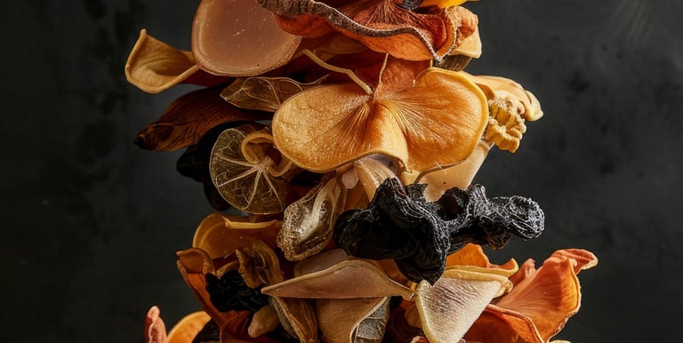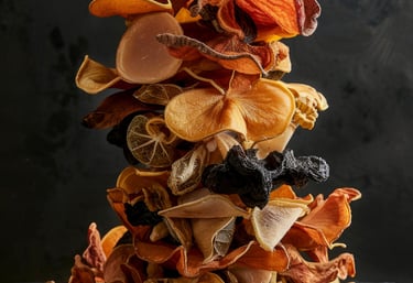 Frutas y vegetales fermentados y deshidratados, destacando nuestro Ajo Negro Ecológico de alta calidad.